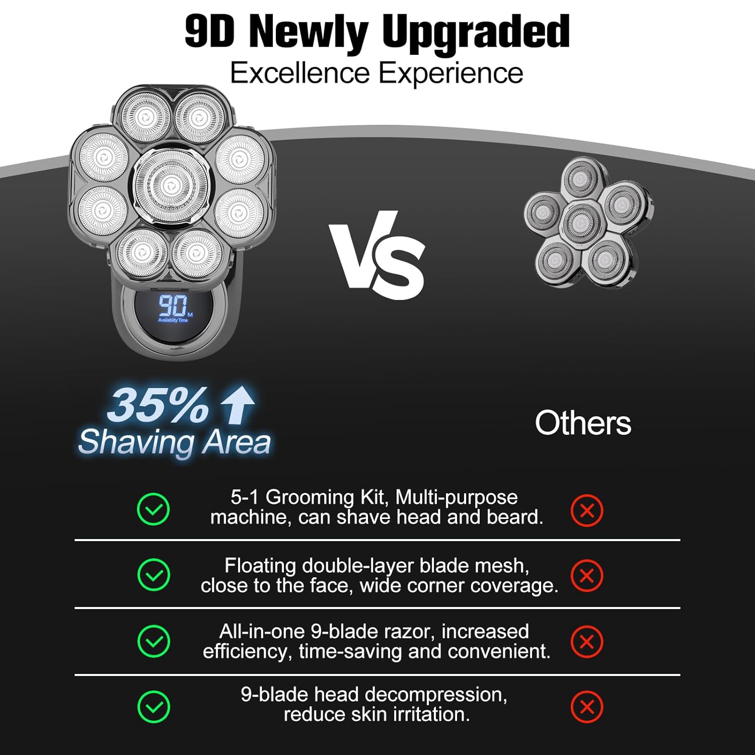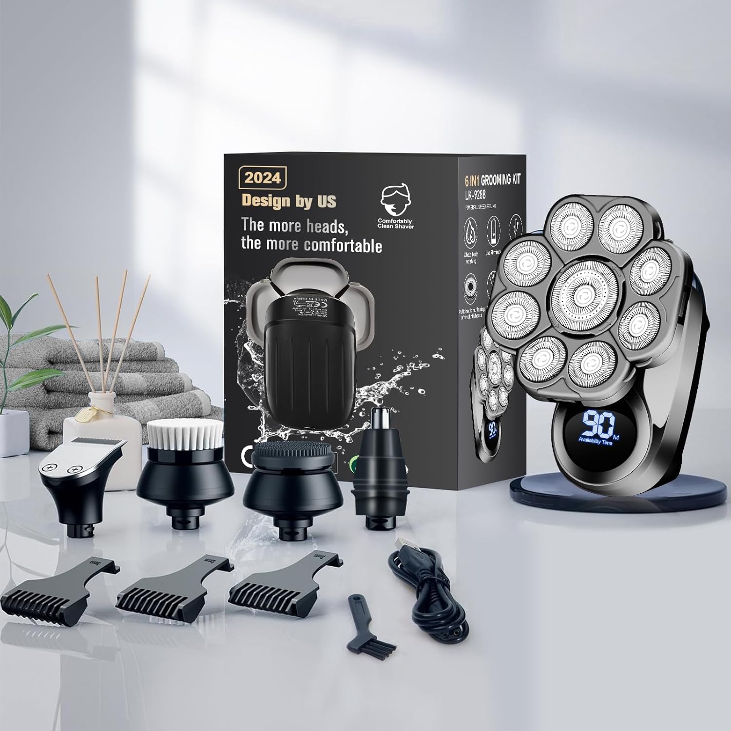 Elevate your grooming game with the Ultimate 9D Head Shaver, featuring a detachable 9D floating head, 6 multifunctional attachments, and waterproof convenience for a precise, irritation-free shave anytime, anywhere!